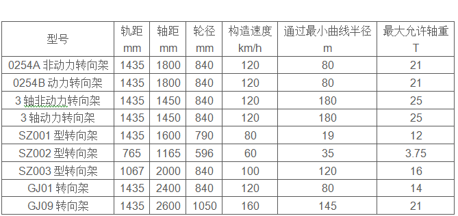 各规格转向架